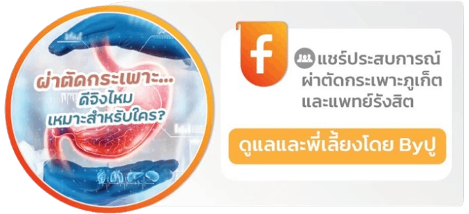 ผ่าตัดกับคุณหมอฐากูร ทีมงานให้คำแนะนำดีมาก ตั้งแต่เริ่มสนใจในการผ่าตัด และตัดสินใจผ่า มีการติดตามผลอย่างดีค่ะ สำหรับเราสิ่งที่ได้รับจากการผ่าตัดครั้งนี้ ความดันดีขึ้นมาก ไม่เวียนหัวตอนเช้า สายตาที่พร่ามัวดีขึ้นมาก ไม่นอนกรน ที่สุดคือน้ำหนักลงไปแล้ว 5 กก. ขอบคุณทีมงานนะคะ”